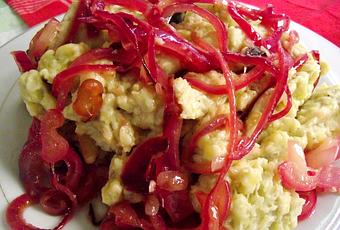 Generalmente se consume con cebollas sofritas por encima y huevos fritos. (En la foto verán también longaniza. ¡Les garantizo que no desentona!)