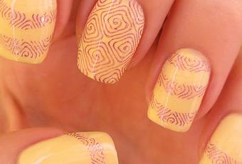 1. Aplicamos el esmalte para estampar en el diseño de uña completa de la placa de estampación que hayamos escogido.
