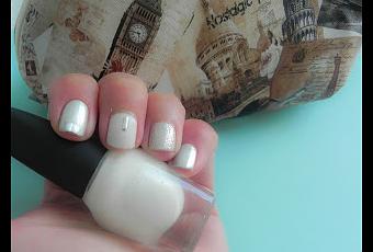 Hace mucho que tenía ganas de hacerme con un esmalte blanco bonito (no "blanco típex", que me da horror), pero como suelen tener problemas de cobertura...no me terminaba de lanzar. El que viene en el set es al azar (el de María José es plata, el mío blanco...) pero me ha encantado: tiene un tono blanco roto precioso que enseguida me inspiró una manicura: