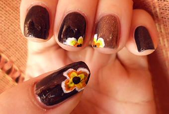 manicura marron y dorada