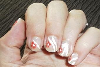 El otro día le ví a Anyol una manicura con flores, las flores parecían bien sencillas, cinco puntitos en un color y dentro otro puntito de otro color.. Asique me dije.. venga vamos a probar...