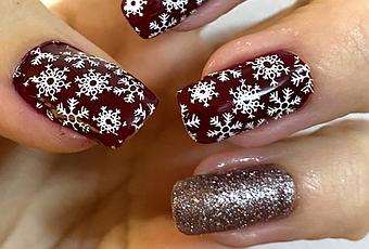 Para realizarla usé la base antiescamación de Masglo, dos capas de un rojo precioso de Yves Rocher y el brillo lo proporciona este precioso esmalte de Ego que según como le da la luz parece dorado o plateado. Los copos de nieve de la placa de BeautyBigBang06 los estampé con un esmalte blanco de Konad y finalmente protegí toda la manicura con el top coat efecto gel de Kiko.