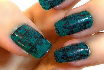 Como base para la manicura he usado la Base Antiescamación de Masglo y sobre ella el Auténtica de Masglo en todas las uñas. Luego estampé con un rojo de estampación de Pinpai unas guirnaldas de la placa placa SPH-016. Para proteger toda la manicura usé el brillo de secado rápido de Masglo.