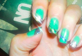 Para esta manicura solo necesitamos: - Base transparente - Esmalte color - Pegatinas - Tijeras - Palillo - Pinzas Primero tienes que tener claro como vas a colocar la pegatina, para saber como quieres cortarla, si te ayudas de unas pinzas para cogerla mucho mejor, así no se te pegará entre los dedos. El palillo es para ajustar la pegatina a la uña La verdad es que quedó genial. Yo solo me lo hice en una mano por aquello de probar.. no sé como me hubiese apañado para poner la pegatina y ajustarla en la otra mano, puesto que siempre quedan rebordes que cortar con tijeras, y mi izquierda es nula. Como era por probar no me dí el top coat por encima, imagino que si lo hubiera hecho hubiera durado más la pegatina. Todo es cuestión de probar.