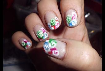 Me encanta hacerme manicuras con técnicas diferentes, esta de la rosa me ha gustado mucho y tiene muchas salidas, puedes hacer un montón de dibujos y combinaciones diferentes.Manicura rosas de colores.