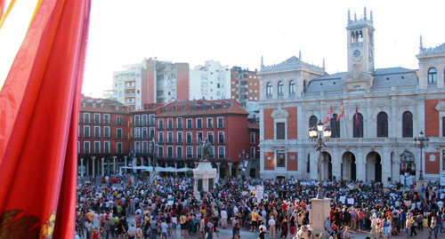 Más de 5.000 personas según la Policía, y 8.000 según la organización, tomaron las calles de la capital vallisoletana esta tarde desde las 19 horas, protestando en contra del Pacto del Euro, que se firmará en las próximas semanas.