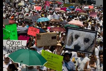 En el marco del Día Mundial de la Biodiversidad, asociaciones civiles como: Adopta mascota, Ángeles peludos, Properro A.C y Anima Naturalis, acompañadas por ciudadanos “comprometidos y amantes de los animales” salieron a las calles para exigir la eliminación de perreras, campañas de esterilización masiva gratuita, penas más severas para los que maltraten animales o comercien con ellos, también demandaron campañas permanentes de información y educación.Vestidos de blanco, los manifestantes portaron flores, pancartas con aforismos de escritores y artistas, animales de peluche y disfraces. Los participantes avanzaron de manera pacífica mientras gritaban todo tipo de proclamas: “justicia para callejerito”, “el que mata un animal es un criminal”, “no lo abandones, el no lo haría” incluso había pancartas en las que se leía mensajes en contra de la ley antiinmigrante de Arizona.