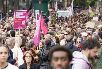 En París, decenas de miles de personas se reunieron en la Place de la République Caminó por el este de París. Alrededor de 20.000 agentes del orden estaban desplegados en la ciudad. La Prensa Asociada informó. Muchos manifestantes salieron a las calles llevando mensajes antirracistas y pro palestinos.
