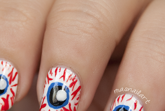 Para la sangre, utilicé un pincel de nail art bien fino y esmalte rojo, vamos haciendo capilares y ¡listo!