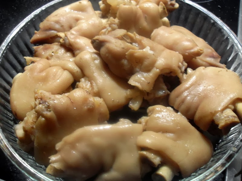 Ingredientes para 4 a 6 personas:4 manos de cerdo partidas por la mitad.