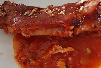 Primero cocer los pies de cerdo con ajo, cebolla y laurel, en modo presión 30-40 minutos.