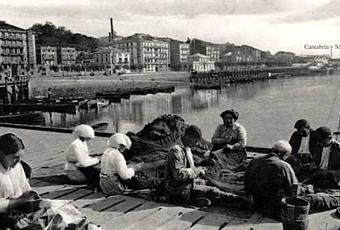En Puertochico las que cosían las redes eran casi todas mujeres; una estampa clásica era verlas en los muelles, sentadas sobre un cojín, con los paños de las redes sujetos entre los dedos de los pies montados uno sobre el otro, haciendo su labor contando sus problemas o cantando las canciones picantesque eran frecuentes entre la gente pescadora. Mi madre, la Sra. Luisa, lo fue en su juventud en San Vicente de la Barquera -para mí el pueblo más bonito del mundo-, aunque ejerció poco tiempo; de las que yo conocí, recuerdo a la Sra. Rosa, madre del sim-