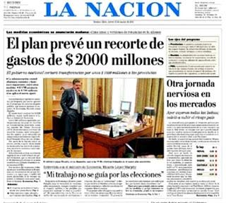 Pero vale recordar para quienes habla este chabón. No es casualidad la editorial de La Nazión al dia siguiente (21/03/2001) en que el joven manos de tijera Lopez Murphy le dieron espiante del menesterio de economía, ellos salieron con uñas y dientes a defenderlo (más allá de la bienvenida con los brazos bien abiertos hacia la llegada de Cavallo):