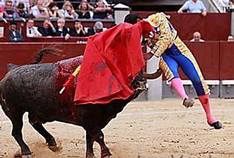 Serafín Marín, al que tengo mucha simpatía por su decidida y valiente defensa por la Fiesta en Cataluña, está donde está por méritos propios. Tan solo algunos detalles con el capote. Con el sobrero de Los Chopes, otro tío que se corrió en segundo lugar, noble, aunque soso, y con calidad en la embestida, estuvo si terminar de acoplarse, aliviándose al final de las series, toreando a media altura, sin las ideas claras. Se puso pesado alargando la faena. Entró decidido a matar, pero no se cruzó y el burel le echó la cara arriba enganchándole por el pecho. De nuevo, San Isidro hizo el milagro y salió ileso. Hubo petición y dio una excesiva vuelta al ruedo con protestas. A su segundo otro manso, descastado, soso y sin transmisión le dieron fuerte en varas con la anuencia de su matador. De esta guisa el toro llegó muy parado a la muleta y cabeceando, y el diestro catalán anduvo con valor pero sin fundamento, con más pena que gloria.