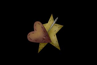 he acolchado todos los medios cuadrados de la misma forma, con dos corazones encontrados y para la trasera he utilizado un algodón en color amarillo y la he ribeteado todo alrededor con un biés en amarillo mostaza