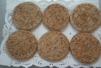 MANTECADOS DE CANELA Y AJONJOLÍIngredientes:500 gr. de harina ligeramete horneada y fría (no tiene que tostarse, sólo secarse bien)300 gr. de azúcar350 gr. de manteca de cerdo4 yemas1 cucharada sopera rasa de canelasemillas de ajonjolí o sésamo (sin tostar)
