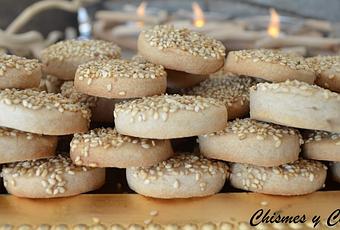 - En un bol pequeño poner el sésamo antes de poner el mantecado en la bandeja del horno ( con papel de hornear) meter la parte de arriba para que se peguen unas cuantas semillas.