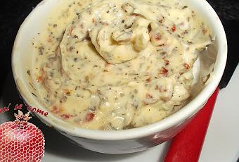 - Se pica el tomate muy fino y se añade junto con los demás ingredientes a la mantequilla. No se usa la batidora para que se vean los ingredientes a trocitos.