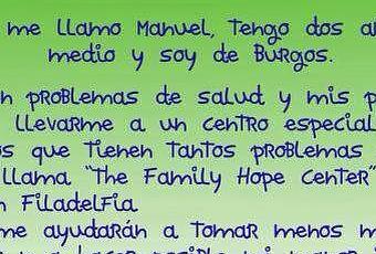 Pero estos padres y Manu no se rinden, van a publicar un libro titulado MANU, EL HEROE DE BURGOS.
