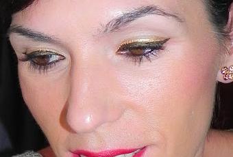 Como les decía, creo que la clave de este look es conjuntar el tono del delineado a color con el resto de los productos. En este caso, dado que es un dorado cálido que tira bastante a amarillo, va bien con tonos rojo cereza como el del jumbo Amarena, de Zoeva, que llevo en las fotos. El colorete es el tono Cassandre de Nars, un rojizo amarronado en crema que va perfecto en este tipo de looks, ¿no creen?