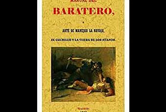 El Duque de la Teruélida siempre ha sido muy de patillas y navajas. No es el único, pues en Proyecto Livrus somos gente con navaja. Eso es así y tanto Dios como el Hombre lo saben y por eso se nos respeta. Esta obra del siglo XIX, anónima, es un genial manual acerca de las posturas y composturas a tomar a la hora del enfrentamiento a navajazo limpio. Todo es genial, desde el prólogo en el que se nos indica que el objetivo del presente manual es poder dotar a la persona honrada de los conocimientos para poder defenderse de los agravios y desaires de los malvados, hasta el final en el que se entonan alegres versos de Manuel Bretón de los Herreros. Está ilustrado con las posiciones adecuadas para cada táctica de ataque y defensa. Es sencillo y directo, y bien escrito. Hoy estaría mal visto, y eso le otorga aún mucha más fuerza, valía y autenticidad ante cualquiera que no sea un mojigato.