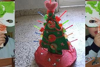 Esta manualidad les gusta mucho a los niños aunque implica mucha atención y vigilancia por parte de los adultos, pues sino terminan comiéndose todo el material.Se trata de forrar de papel una base (en este caso de corcho) y una figura la que se desee , en este caso es un árbol de Navidad con motivo de esas fiestas, pero se puede variar según el momento del curso en el que nos encontremos.