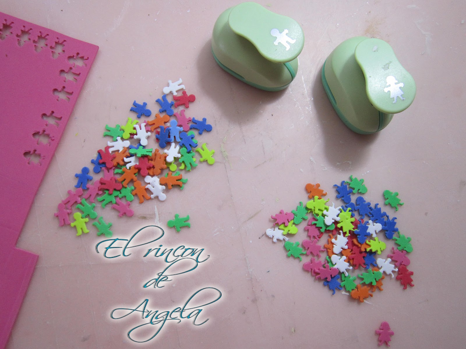 - Cortar con los cortadores las figuritas con goma eva de colores
