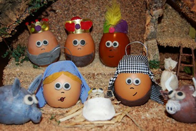 En este Belénse han utilizado huevos para realizar los cuerpos de la Sagrada Familia.