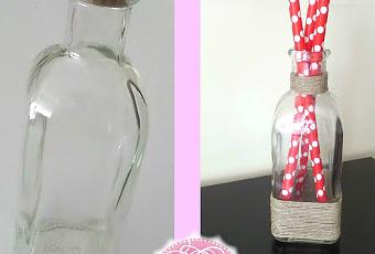Y así es como queda la botella de cristal decorada con cuerda