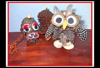 Además de las piñas hemos usado unas conchas para los pies , plumas y unos limpiapipas de tigre que me encantan.