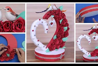 Hola amigos, si desean hacer un detalle bonito para regalar en este san valentín, les dejo estas ideas que espero y les guste, todo es hecho a mano de forma casera y con mucho amor. Esta bella manualidad, lo haces con piezas de unicel, adornos de pajaritos, papel y manos a la obra, es un lindo detalle que tiene la forma de un corazón, que lleva los pajaritos en lo alto. Estas rosas de papel que decoran el corazón, se pueden hacer con papel de color rojo, o papel crepe, como también con listón.
