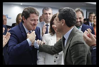 El presidente electo de Andalucía, Juanma Moreno (d) recibe las felicitaciones del presidente de Castilla Y León, Alfonso Fernández Mañueco (i) en presencia de la presidenta de la Comunidad de Madrid, Isabel Díaz Ayuso (c) David Torres recuerda en Público las diversas maneras de afrontar los grandes incendios forestales: aplicar una eficaz estrategia preventiva, preparar cortafuegos durante los meses invernales, formar y mantener brigadas de alerta rápida, entrenar personal especializado, en definitiva, utilizar los medios disponibles para evitar que el fuego se propague y se vuelva incontrolable. “Claro que esto sería jugar sucio, jugar con ventaja, y hay gente que prefiere que la partida esté igualada o, mejor aún, darle al incendio la ventaja. En la Sierra de la Culebra, en Zamora, el gobierno de Mañueco le ha vuelto a dar al fuego todas las oportunidades posibles de hacer daño, igual que hizo el año pasado en Ávila.