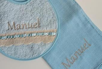 Un babero y una gasa personalizados.