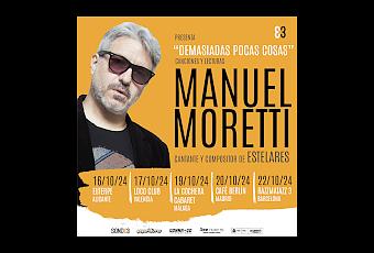 Manuel Moretti nos presenta una gira en solitario por nuestros escenarios en octubre, una serie de conciertos que os presentamos. Manuel Moretti estará en España presentando Demasiadas Pocas Cosas en el mes de octubre. Manuel Moretti es el cantante de Estelares, en este caso llega en solitario en una gira que durante el mes de octubre, será en una gira donde Demasiadas Pocas Cosas, ciudades como Madrid, Barcelona o Valencia serán parte de esta gira que os presentamos.