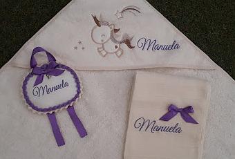 Manuela podrá disfrutar de su toalla personalizada, su gasita y su medallón con su nombre.