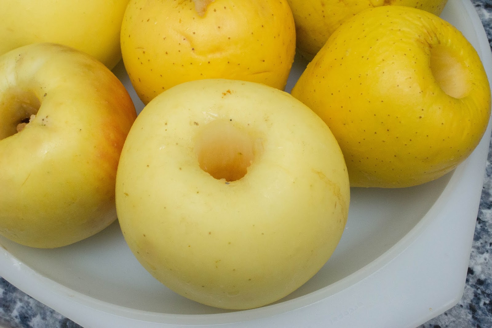 Lava las manzanas y quítalas el corazón. Colócalas en un plato apto para microondas.