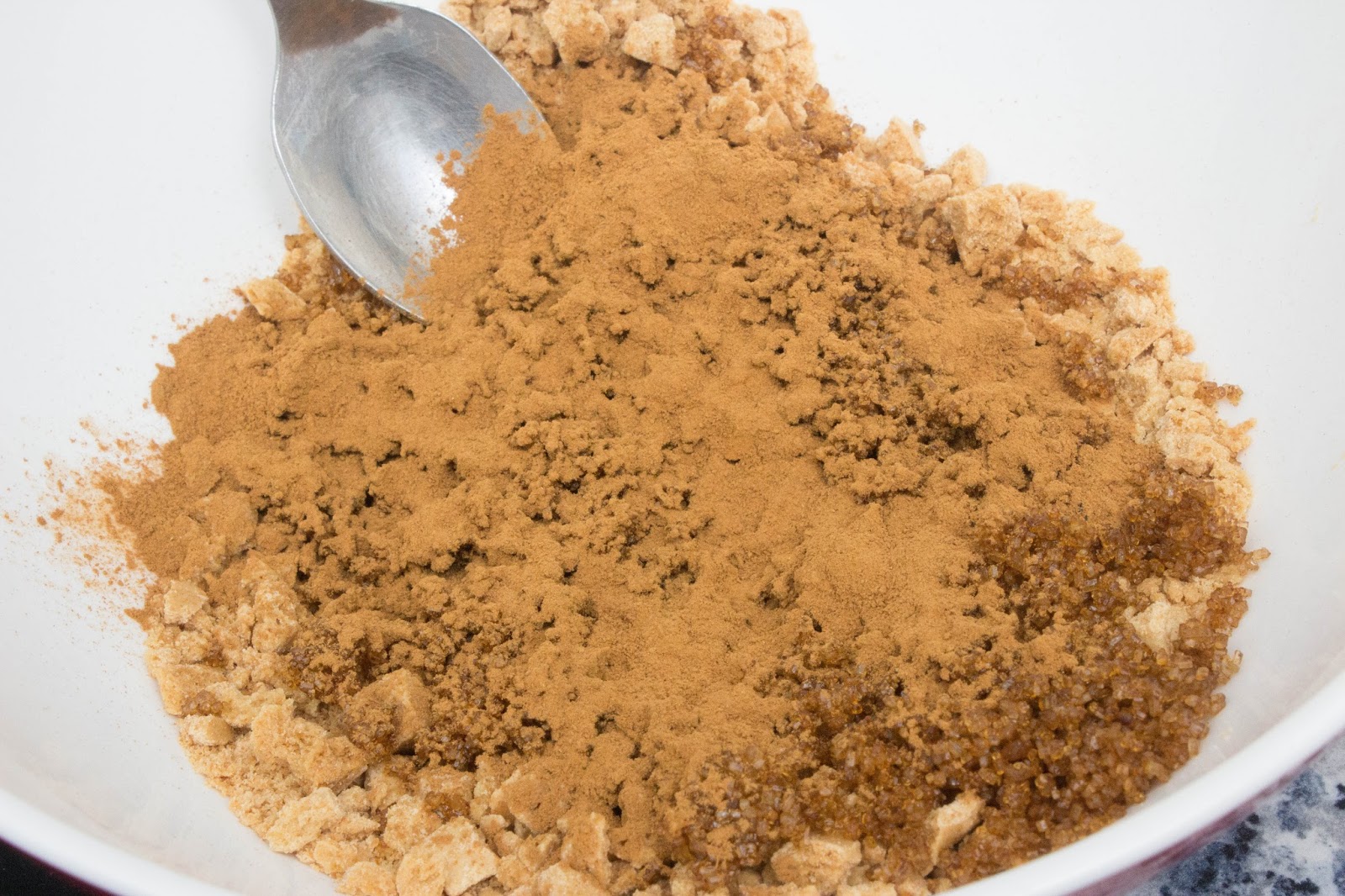 Echa el azúcar y la canela y lo remueves.