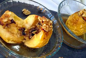 En mi casa somos de buen comer, además no estoy acostumbrada a cocinar para que sobre, suelo calcular muy bien las cantidades y nos lo comemos todo por lo que no puedo "reciclar sobras" de otros platos para confeccionar uno nuevo que es de lo que se trata este reto.Lo que si hago mucho es idear platos o recetas con ingredientes que veo que se van a estropear o que se quedan solos por la nevera o la despensa, eso también es reciclar, usar antes que tirar, cojo unos de aquí y otros de allá, los junto y salen exquisiteces como estas manzanas asadas con frutos secos y queso de cabra al Pedro Ximénez, conjunción de manzanas arrugadas en el frutero, un trozo de queso rodando por la nevera y lo demás imaginación al poder...