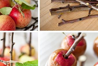 MANZANAS CUBIERTAS DE CARAMELO ingredientes para 4 personas 4 manzanas rojas no muy grandes, 300g de azúcar, 1/2 cucharada de colorante alimentario rojo, 1/2 limón, 100g de mantequilla.