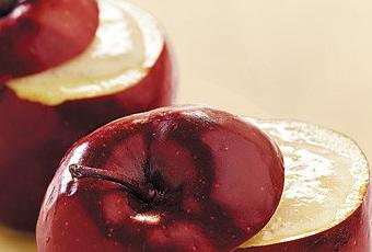 1. Corta una "tapita" por la parte superior de las manzanas, retirales el corazón y un poco de la pulpa; rocíalas con el aceite.