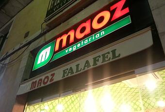 Maoz Vegetarian es una cadena de comida rápida de falafels que sirve comida estrictamente vegetariana y promueve "vegolución" y el estilo de vida sano. La cadena fue fundada por un matrimonio israelí que vivía en