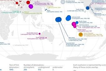 Mapa con todas las bombas atómicas que han sido detonadas en el mundo