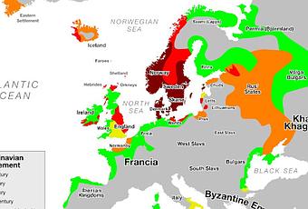Es un mapa de asentamientos, y en algunas ocasiones zonas de incursión con posibles zonas de asentamientos menores, escandinavos en Europa,tanto continental como insular entre los siglos VIII d.C y XI d.C. Esta sacado de este hilo y tiene algunas reflexiones y datos realmente interesantes, como estos: