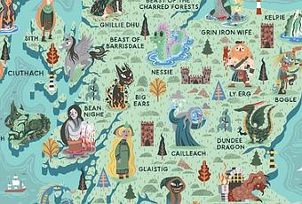 Pasando a otras cosas,un poco mas relajadas que tanta emoción de seguido no es bueno, tenemos otro de los mapas de criaturas míticas obra de Neil Parkinson. En esta ocasión de las criaturas que pueblan las tierras escocesas.Muchas las conozco por juegos de rol,novelas,libro-juegos o hasta vídeojuegos, y algunas son idénticas a las que salen en los mitos escandinavos (Debido a la presencia escandinava en esas tierras),solo que con otro nombre, pero otras no las conocía de nada y me ha picado la curiosidad.Espero que a vosotros, pues tambien.