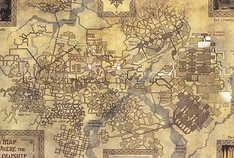 Este es un mapa de Moria ("La Mina del Enano" o Khazad-dûm) que enseña el recorrido que llevo la Compañía del Anillo desde que entro hasta que salio de el.