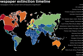 Hay quien hace mapa de todo. Esta gente de www.futureexploration.net ha elaborado un mapa de cómo irán desapareciendo los periódicos en el Mundo, con un documento incluso de las razones de por qué va a desaparecer. ¿Tu crees que desaparecerán? ¿o seguirán existiendo? ¿está en peligro la libertad de prensa?
