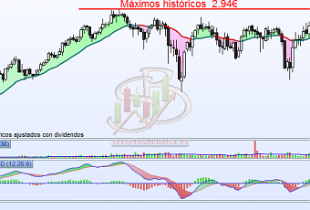 Después de varias semanas subiendo que permitió alcanzar los 3,45€ la cotización sufrió un revés lo que hizo que se acercara a la que anteriormente había hecho de resistencia en los 2,94€ y que ahora está haciendo las veces de soporte. En este recorte que se esta realizando a modo de lo que parece un pullback ha hecho que el valor se debilitara en gran medida y el volumen no es elevado. De momento la mm de 30 sesiones permanece alcista, y mientras no se pierda el nivel de los 2,94€ no habría de qué preocuparse.