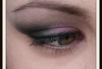 Desde el lagrimal hacia la mitad del ojo el tono fucsia mate y desde la mitad hacia el final el tono Killer!, subiendo un poco por encima del fucsia por la zona del pliegue.Por el párpado fijo y difuminando el corte con el tono blanco perlado para iluminar.