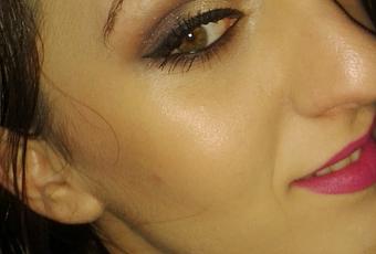3º Aplico la sombra gris oscura con reflejos lilas en el resto del parpado móvil.