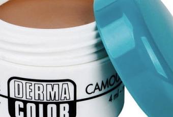 Maquillaje corrector, a la venta en formato godget (4 gramos) es un producto en crema que corrige e inhibe tonalidades no deseadas de la piel. "Dermacolor Camouflage Creme es un maquillaje altamente pigmentado creado para corregir y cubrir manchas de la piel, cicatrices y tatuajes. Dermacolor Camouflage Creme es especialmente apropiado para la cara y el cuello. Con el uso adecuado de Dermacolor Camouflage System, las anomalías de la piel pueden corregirse fácilmente". Contiene 4 gramos, con una caducidad recomendada de 12 meses. También existe en formato tarrito grande, pero ahora no lo encuentro a la venta en ninguna tienda online.